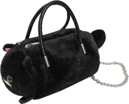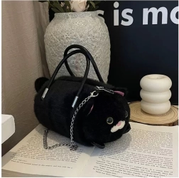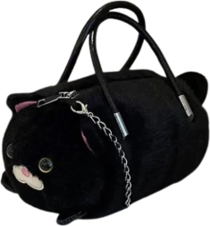 Mīlīga plīša soma kaķa formā elegantā melnā krāsā apvieno stilu un funkcionalitāti. Mīksta, maiga virsma, izteikti kaķa detaļu akcenti un praktiski dubulti rokturi papildināti ar noņemamu metāla ķēdīti nēsāšanai pār plecu. Rāvējslēdzēja aizdare sargā jūsu sīkumus, bet kompaktie izmēri ir ideāli ikdienai un kā mīļa dāvana.