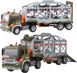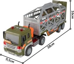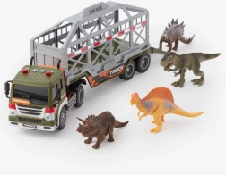 Šis detalizēti izstrādātais kravas auto ar atvienojamu piekabi sniedz bērniem reālistisku darbību un piedzīvojumus. Pateicoties frikcijas piedziņai, pēc pastumšanas tas dodas uz priekšu, bet gaismas un skaņas (motors, signāltaures skaņa, atpakaļgaita, sirēna) pastiprina spēles pieredzi. Būris ar nolokāmu rampu ļauj viegli iekraut un izkraut dinozaurus.