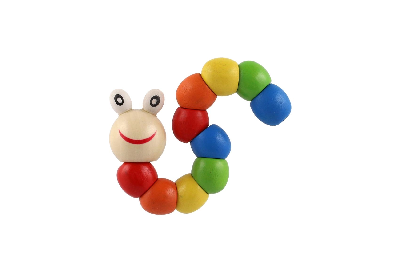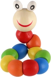 Šis košais koka tārpiņš ir klasiska manipulēšanas rotaļlieta, kas dabiski veicina sīko motoriku, acu–roku koordināciju un radošumu. Atsevišķie segmenti ir savienoti ar slēptu locītavu, tāpēc rotaļlieta vienmērīgi lokās, grozās un notur pamatformas.