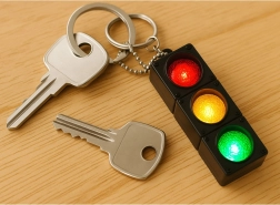 Izklaides piekariņš miniatūra semafora formā ar trim LED diožu gaismām, kas Maina krāsas un piedāvā mirgošanas efektu. Ideāli piemērots kā izglītojošs līdzeklis bērniem, oriģināls gadžets un praktisks atslēgu, mugursomas vai penāļa piekariņš. Viegls, izturīgs un ar vienkāršu vadību ar vienu pogu, darbināms ar komplektā iekļautām baterijām.