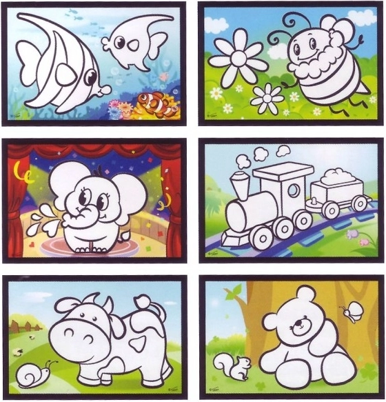 Darba gaita: Atveriet otiņu, piepildiet to ar ūdeni un aizveriet. Pārvelciet pāri baltajām attēla daļām, līdz tās skaisti iekrāsojas. Pēc dažām minūtēm attēls nožūs un būs gatavs jaunai radošai nodarbei.