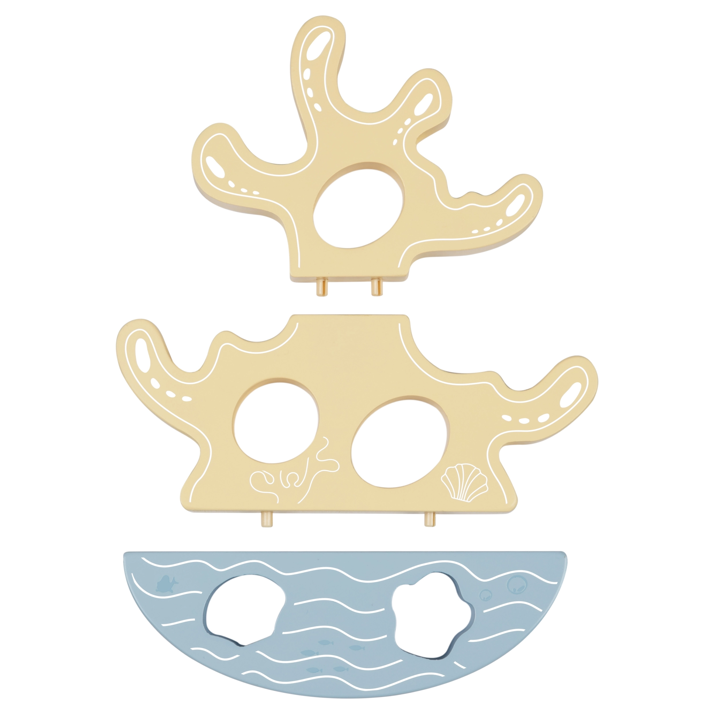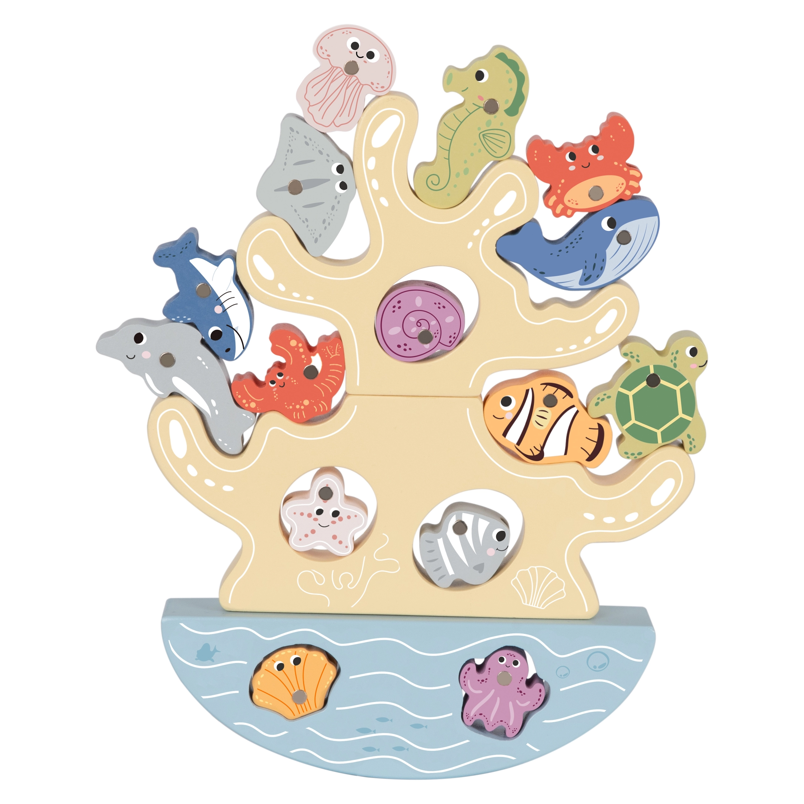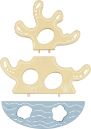 Koraļļu tornis uz šūpojošas pamatnes aicina kraut un līdzsvarot. Attīsta sīko motoriku, loģiku un telpisko uztveri rotaļīgā veidā.