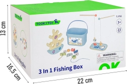 Divas koka makšķeres ar magnētiem un koši dzīvnieciņi pārvērš galdu okeānā. Bērni trenē precizitāti, pacietību un acu–roku koordināciju, vienlaikus ķerot pēc formām un krāsām.