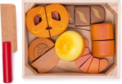 Iepazīstinām ar koka griešanas maiznīcas komplektu, kas paredzēts visiem bērniem, kuri vēlas izpētīt virtuves pasaules burvību. Šis krāsainais komplekts ietver dažādu formu izstrādājumus, piemēram, kruasānus, virtuļus un maizi, kurus var “sagriezt” ar komplektā iekļauto koka nazi. Rotaļlietas ir izgatavotas no kvalitatīva koka un savienotas ar lipekli, kas nodrošina interaktīvu un reālistisku spēli.