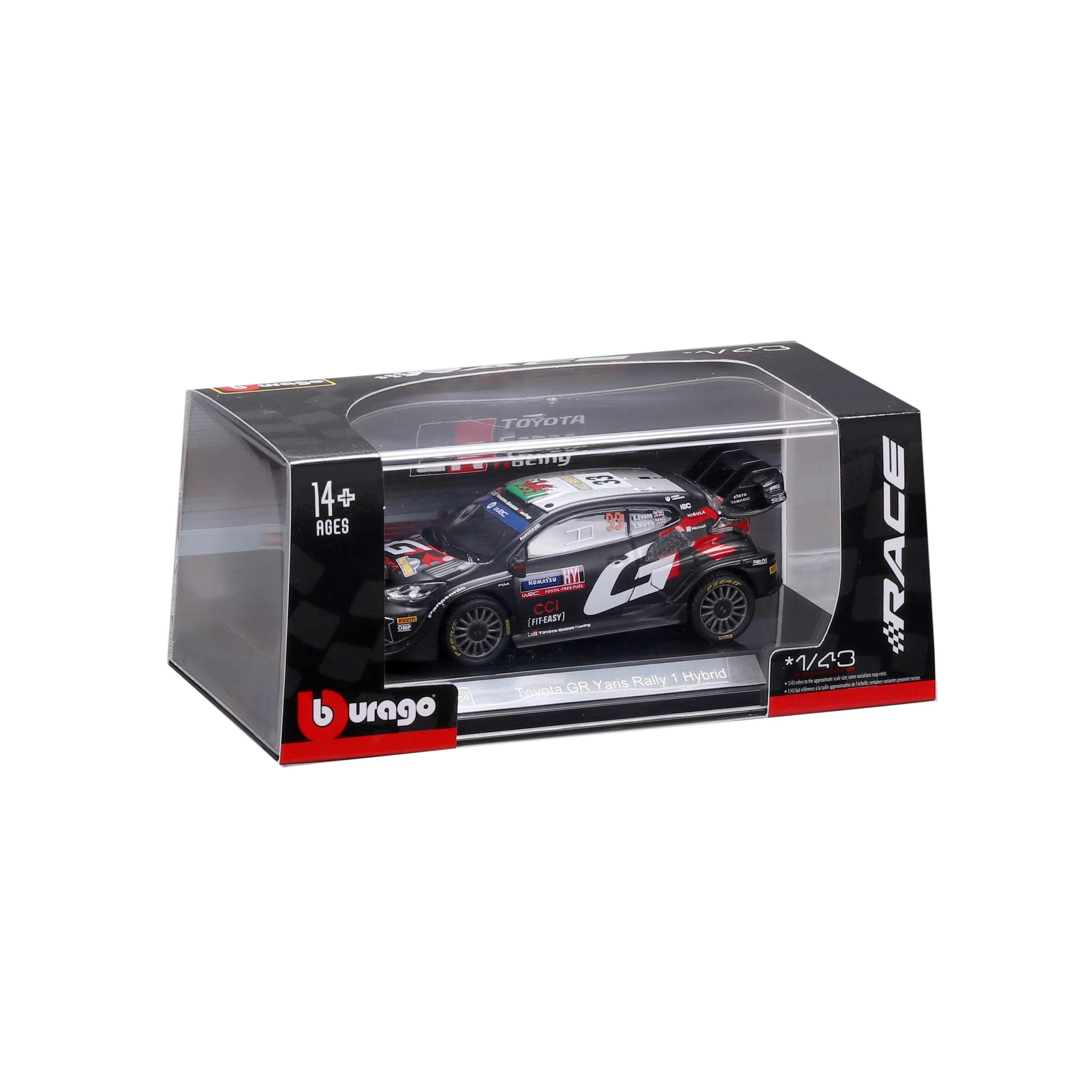 Izbaudi pasaules rallija atmosfēru ar detalizētu kolekcionāru modeli Bburago 1:43 mērogā, kas uzticami ataino Toyota GR Yaris Rally1 Hybrid ar numuru 33 TOYOTA GAZOO Racing krāsās. Modeli izceļ reālistiski elementi, piemēram, papildus rallija lukturi, izteikts aizmugurējais spārns un precīzas komandas uzlīmes.