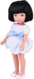 Atklājiet Lovely Girl lelles šarmu ar īsiem melniem matiem un zilām acīm. Reālistiska seja, iepotēti mati un rūpīgi šūts tērps padara to par skaistu rotaļlietu un dekoru bērnistabai. Pateicoties kustīgajām rokām, kājām un galvai, lelle viegli ieņem dažādas pozas.