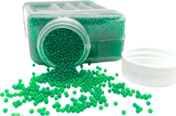 Praktisks caurspīdīgs konteiners ar skrūvējamu vāciņu nodrošina ērtu bērtspēju, daudzuma kontroli un drošu uzglabāšanu uzsūkušām lodītēm.