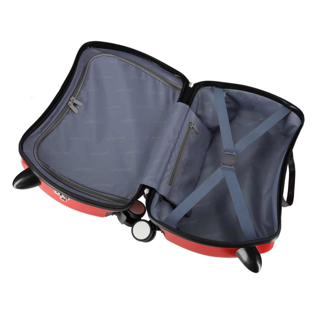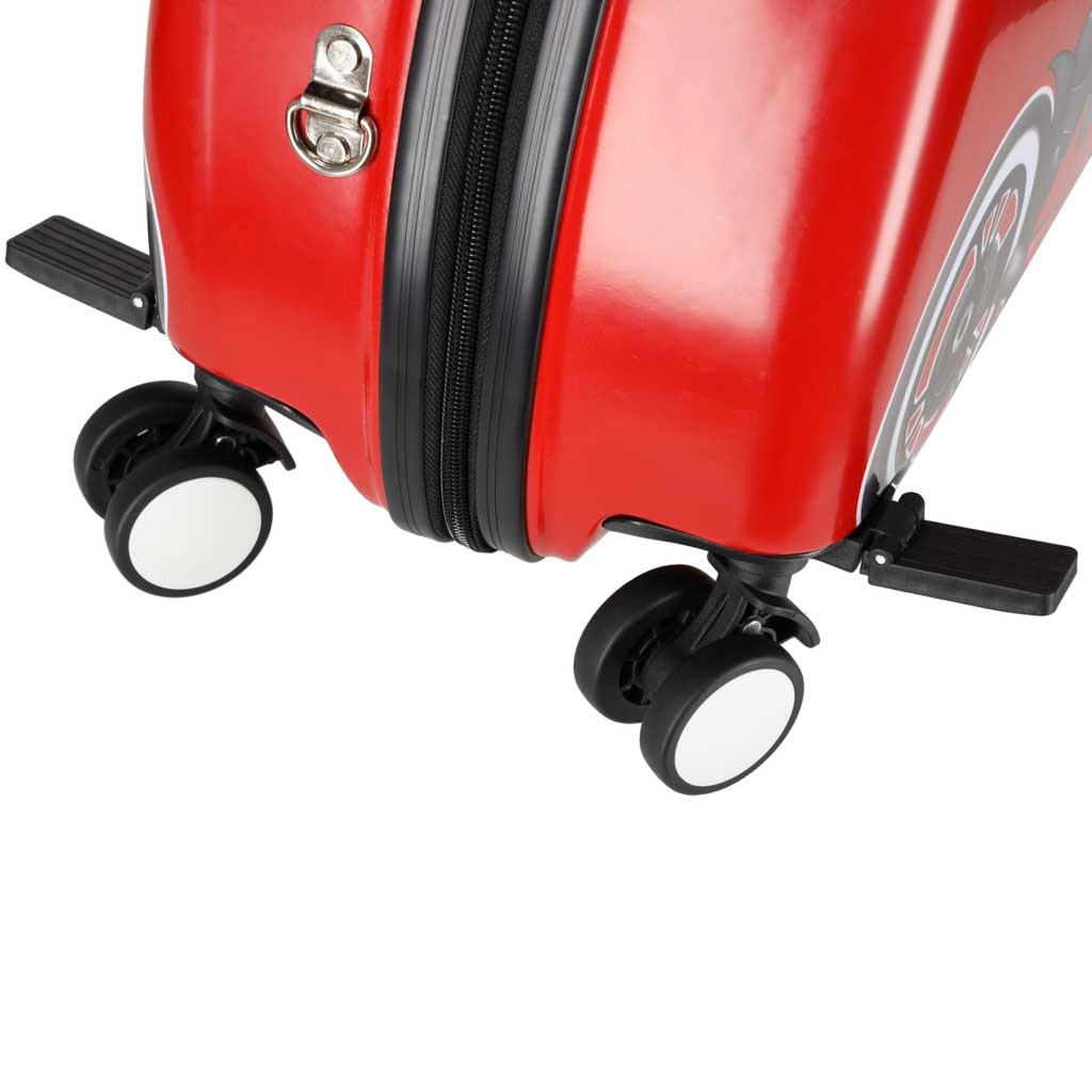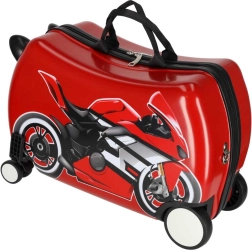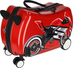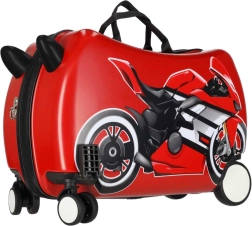 Bērnu čemodāns ar riteņiem un motocikla motīvu pārvērtīs gaidīšanu lidostā un ceļošanu par izklaidi. Bērns var ērti apsēsties uz čemodāna un ļauties vilkšanai, kamēr stabilie priekšējie “ragi”–rokturi nodrošina drošu satvērienu braukšanas laikā. Gudra kombinācija ar diviem stingriem aizmugurējiem riteņiem un diviem priekšējiem 360° grozāmiem riteņiem garantē stabilitāti un lielisku vadāmību.