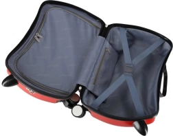 Viegls un izturīgs ABS+PC korpuss iztur triecienus un intensīvu lietošanu mazo ceļotāju rokās. Interjers piedāvā rāvējslēdzēja starpsienu, krusteniskas fiksācijas siksnas un praktisku kabatu ar rāvējslēdzēju sīkumiem. Čemodānu var nest rokā, pār plecu ar noņemamu siksnu (130 cm) vai ērti vilkt uz riteņiem.