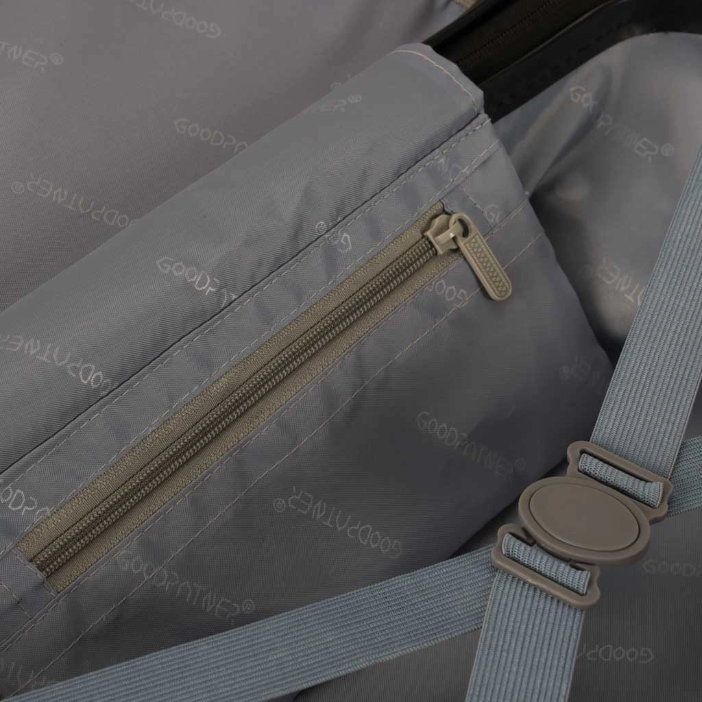 Iekšpusē ir rāvējslēdzēja starpsiena, krusteniskas lentes un kabata ar rāvējslēdzēju 25 × 11 cm. Viss ir savā vietā un tur arī paliek.