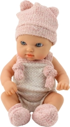 Mīlīgs 18 cm bērniņš ar reālistiskām detaļām un kustīgām ekstremitātēm iepriecinās ikvienu bērnu. Tam ir maigs, pieskārienam patīkams ķermenis, noņemami apģērbi un var sēdēt pats, tāpēc tas ir ideāls rūpju spēlēm un iztēles attīstīšanai. Komplektā ir cepurīte ar austiņām, zeķītes, biksītes un priekšautiņš ar bantīti.