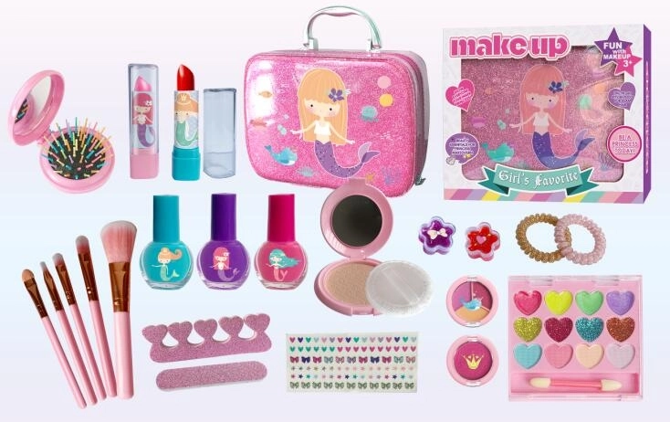 Šis bērnu kosmētikas komplekts elegantā čemodānā piedāvā visu, kas mazajai vizāžistei nepieciešams radošam grimam. Visi iekļautie produkti ir īsti, testēti un droši bērniem, tāpēc viņas var bez raizēm spēlēties skaistumkopšanas salonā.