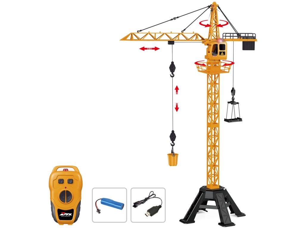 Reālistisks tālvadības celtnis iepriecinās mazos būvētājus no 6 gadu vecuma. Tas piedāvā augstumu līdz 99 cm, izturīgu plastmasas izpildījumu un vienkāršu vadību ar Open touch tipa pulti. Darbojas ar Li‑ion 3,7 V / AA baterijām un nodrošina stundām ilgu radošu spēli ar būvtehniku.