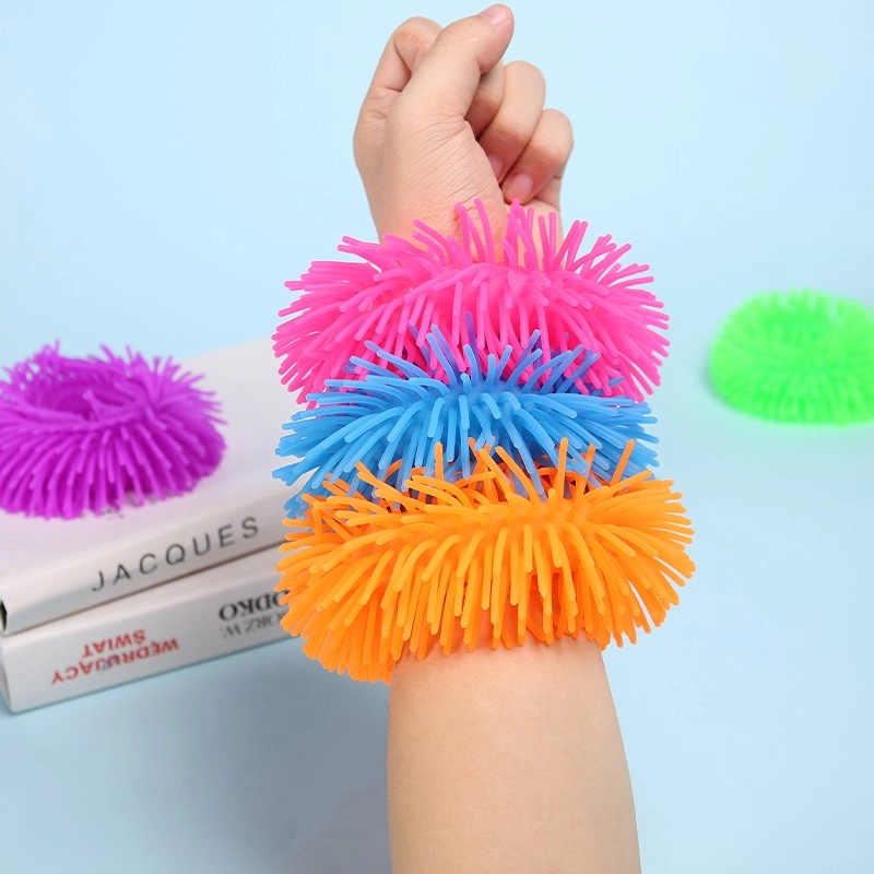 Atklājiet jautru un stilīgu veidu, kā atslābināties – pūkaina gumijas pretstressa aproce. Pateicoties mīkstam un elastīgam materiālam, to var spaidīt, izstaipīt un mazināt spriedzi jebkurā dienas brīdī. Košās krāsas piešķir jūsu apģērbam odziņu, un aproce kļūs par iemīļotu aksesuāru gan bērniem, gan pieaugušajiem.