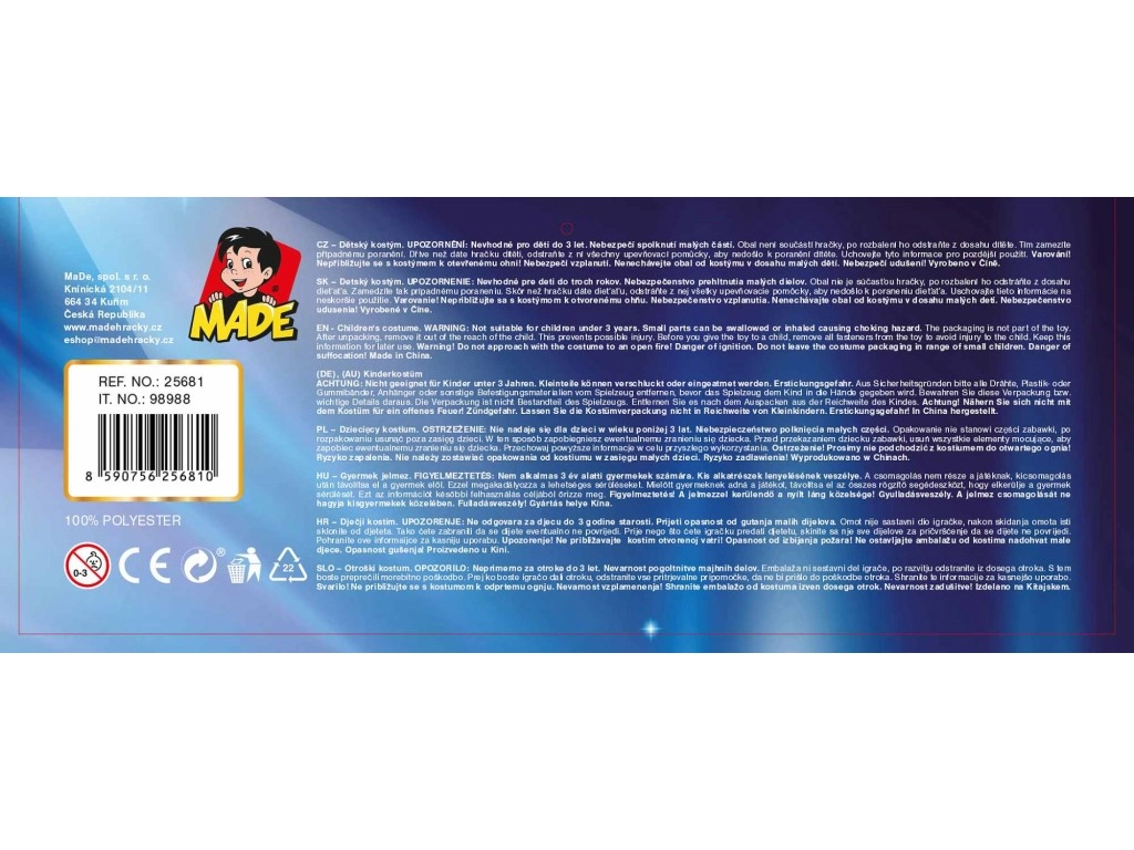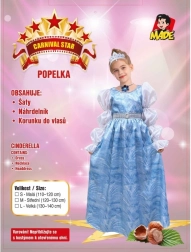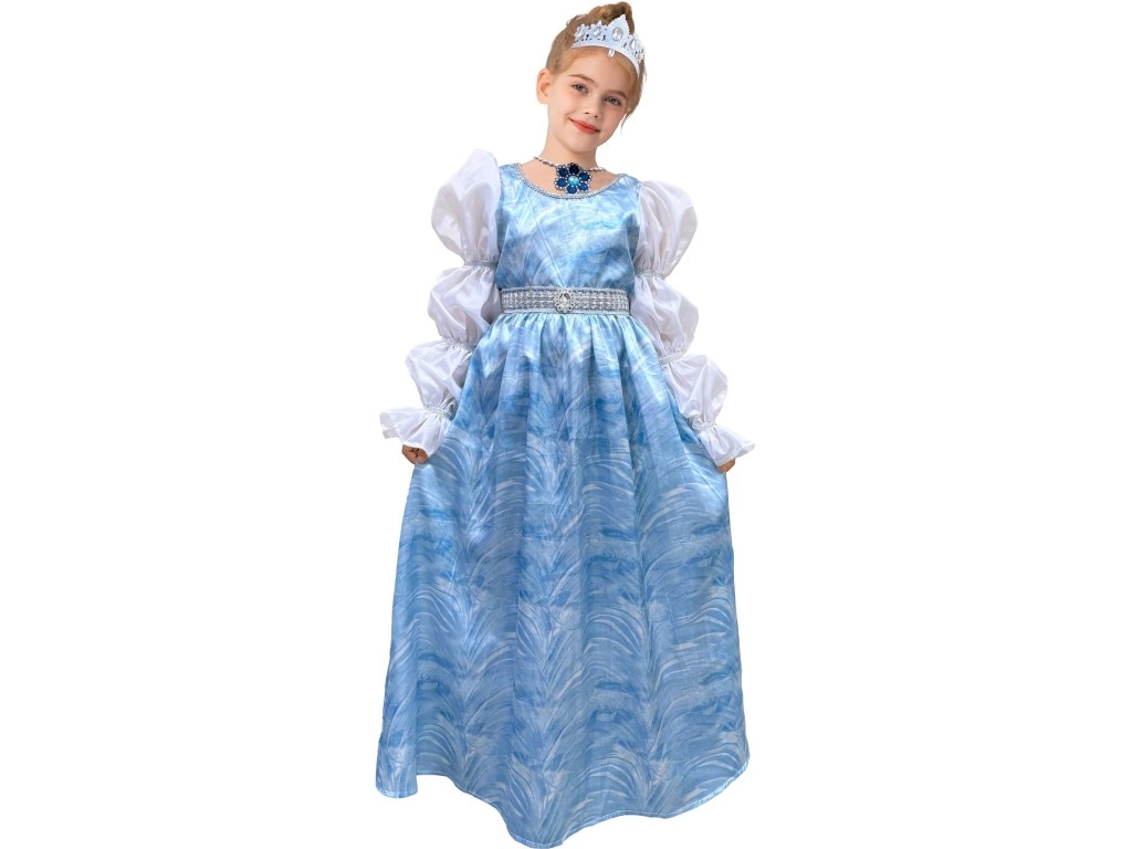 Iededziet bērna iztēli ar burvīgo Pelnrušķītes kostīmu! Šī karnevāla kleita augumam 110–120 cm iepriecinās mazas princeses ar maigu dizainu un ērtu piegriezumu. Komplektā ir kaklarota un matiņu kronītis, tāpēc jūsu bērnam viss gatavs karnevālam, bērnu ballītei un arī bērnudārza pasākumam.