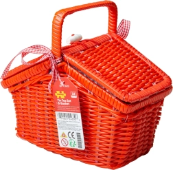 Šis skaistais tējas komplekts ir ideāli piemērots bērniem no 3 gadu vecuma. Tas ietver visu, kas nepieciešams tējas svinību rotaļām, un to visu var ērti ievietot pārnēsājamā sarkanā pītā grozā.