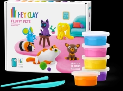 Hey Clay Fluffy Pets radošais komplekts ir lieliska izvēle bērniem, kuri mīl modelēšanu un dzīvnieciņus. Mīkstā un maigā masa košās krāsās viegli veidojas, nelīp un pēc pabeigšanas dabiski sacietē gaisā. Bērni iegūst savas figūriņas, ar kurām var turpināt spēlēties vai tās izstādīt.