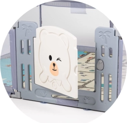 Izturīgās plastmasas durtiņas ar mīlīgu motīvu un drošu slēdzeni atvieglo ieeju un izeju. Divi roktura gredzeni palīdz bērniem trenēt motoriku, satvērienu un pirmos soļus. Izstrādājums atbilst standartam EN 12227:2010, tādēļ jums ir pārliecība par pārbaudītu drošību.