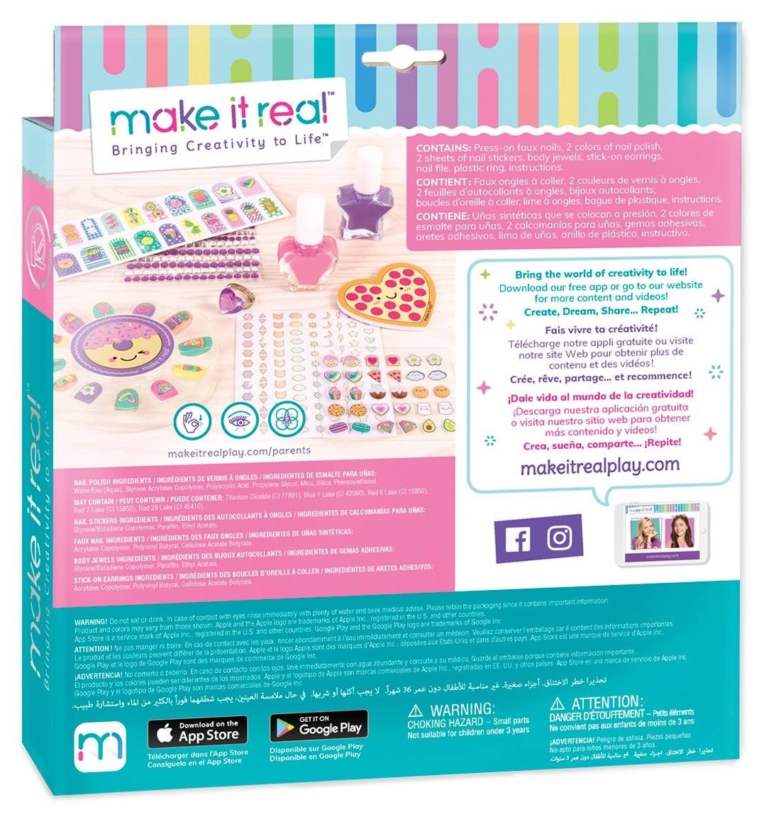 Atklājiet mājas manikīra burvību ar radošo Make It Real komplektu! Iepakojumā atradīsiet visu, kas nepieciešams skaisti nolakotiem nagiem – 2 nagu lakas, uzlīmes, mākslīgos nagus, dekoratīvos akmentiņus un piederumus, lai jūsu nagi būtu vēl mirdzošāki. Ideāla izklaide un stils bērniem no 8 gadu vecuma.