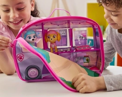 Aptuveni 30 cm garais izvelkamais kemperītis, atverot, kļūst par bagātīgi ilustrētu mini namiņu ar parka paklājiņu piknikam un atpūtai pēc misijas. Bērni izbaudīs ar seriālu iedvesmotus stāstus, pateicoties Skye, Liberty un Everest figūriņām ar šūpojošām galviņām un kustīgām locekļu daļām.