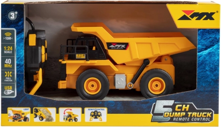 Reālistisks RC pašizgāzējs mērogā 1:24 aizrauj ar detalizētu izpildījumu un pilnībā funkcionējošu kravas kasti. Vadība 40 MHz frekvencē, darbības rādiuss 10–15 m, 5 kanālu pults, gaismas efekti un uzlādējams 3,7 V akumulators nodrošina izklaidīgu un plūdenu braukšanu ar ātrumu 2–3 km/h.