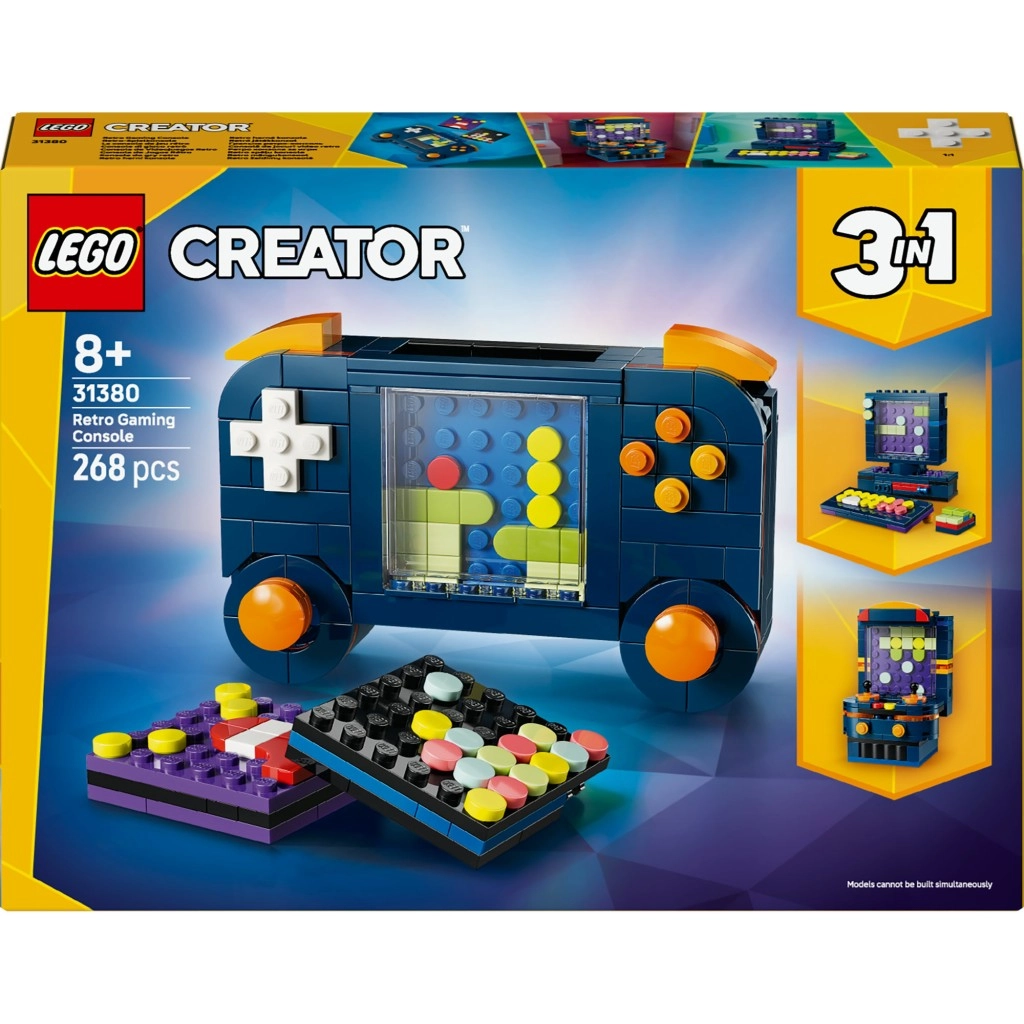 Pateicoties 3-in-1 koncepcijai, varēsiet uzbūvēt arī mini galda datoru ar tastatūru, monitoru un peli, vai arkādes automātu ar autentiskiem vadības elementiem. Komplekts attīsta bērnu radošumu, pacietību un sīko motoriku, kā arī priecē kā oriģināla dekorācija bērnistabā.