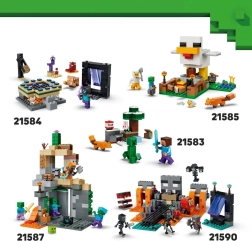Komplektā ir 4 detalizētas minifigūras: Mothman ar burvju cirvi, Creaking, Creeper un Skelets dimanta bruņās ar loku. Katra figūra uzticami atspoguļo spēles prototipu un paplašina gan dinamiskas, gan radošas spēles iespējas.