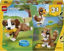 Atklājiet bezgalīgu izklaidi ar komplektu LEGO Creator 3 vienā, kas bērniem no 8 gadu vecuma ļauj no vienas kluču kastes uzbūvēt mīļu kucēnu, vāveri vai pīli. Modeļiem ir kustīgas daļas un aksesuāri spēlēšanai un izstādīšanai, tādējādi tie sniedz radošu būvēšanu, stāstu spēli un izcilu ekspozīciju vienā.