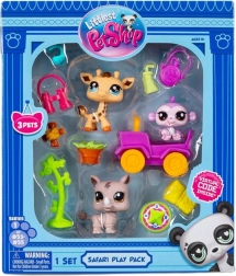 Safari komplekts no LITTLEST PET SHOP 7. paaudzes sērijas ir lieliska izvēle bērniem, kuri mīl krāt figūriņas un radīt pašiem savus piedzīvojumu stāstus. Trīs dzīvnieku varoņi – žirafe #53, pērtiķītis #54 un degunradzis #55 – izceļas ar detalizētu izstrādi un ir aptuveni 5 cm augsti. Katrai figūriņai ir sava personība, ko atklāsiet ar pievienoto karti.