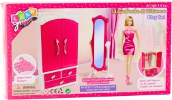 Izveidojiet perfektu leļļu garderobi ar šo stilīgo rozā–balto komplektu. Augstais skapis ar atveramām durvīm un četrām atvilktnēm sniedz pietiekami daudz vietas kleitām, aksesuāriem un iemīļotiem tērpiem, savukārt brīvi stāvošs spogulis ar dekoratīvu rāmi mudina uz modes ainām un ikdienas spēlēm.