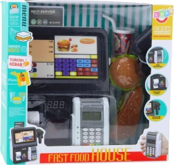 Komplektā ietilpst kase ar displeju, POS terminālis, rokas skeneris un plastmasas pārtikas un dzērienu komplekts tematiskai FAST FOOD spēlei. Izturīga plastmasas konstrukcija ir droša un piemērota lietošanai mājās un bērnudārzos.