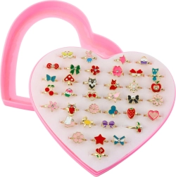 Šis krāsainais gredzenu komplekts iepriecinās visas mazas rotu mīļotājas. Pateicoties regulējamam diametram, gredzeni viegli pielāgojas bērnu pirkstiņiem, nodrošinot ērtu un drošu nēsāšanu. Caurspīdīgais sirsniņas kārbiņas vāciņš ļauj pārskatāmi uzglabāt un ātri izvēlēties iecienītos motīvus.