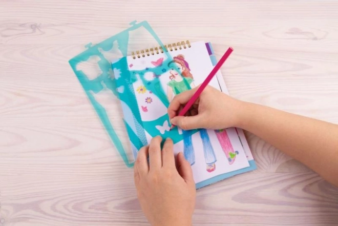 Ieniriet radošā modes ceļojumā retro stilā. Komplekts attīsta bērnu iztēli un māca dizaina pamatus – no siluetu veidošanas līdz krāsu kombinēšanai. Pateicoties sagatavotajiem šabloniem un uzlīmēm, bērni viegli radīs savus oriģinālos tērpus.