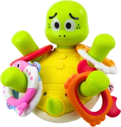 Iemērcot ūdenī, bruņurupucis automātiski aktivizē ūdens strūklas, pārvēršot vannas laiku jautrā priekšnesumā un uzturot bērna uzmanību.