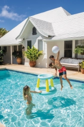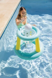Pateicoties ātrajam vārstam, grozu ir viegli uzpūst un izlaist gaisu, to ērti pārnēsāt vai uzglabāt. Komplektā ir uzpūšama basketbola bumba, kas peld un ir ideāli piemērota mešanai un ķeršanai ūdenī – lieliski ģimenes sacensībām un draudzīgām spēlēm.