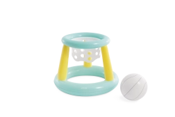 Izbaudiet stundām ilgu izklaidi ūdenī ar uzpūšamu basketbola grozu baseinam. Peldošā pamatne ar diviem gredzeniem un trim dzelteniem stabiem nodrošina stabilitāti uz ūdens virsmas, savukārt baltie tīkli droši notver bumbu. Izturīgais PVC materiāls ir patīkams taustei un viegli kopjams.