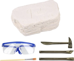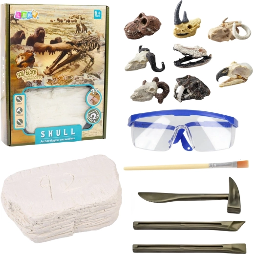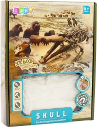 Šis arheoloģijas komplekts bērniem ļauj piedzīvot īstus “izrakumus”. Izturīgā ģipša blokā paslēpts noslēpumains galvaskauss – tas var piederēt dažādiem aizvēsturiskiem radījumiem, tāpēc katrs atklājums ir unikāls. Ar dlīžiem/kaltiem, āmuriņu un otiņu bērni var izmēģināt, kā saudzīgi atsegt atradumu, to notīrīt un pētīt detaļas.