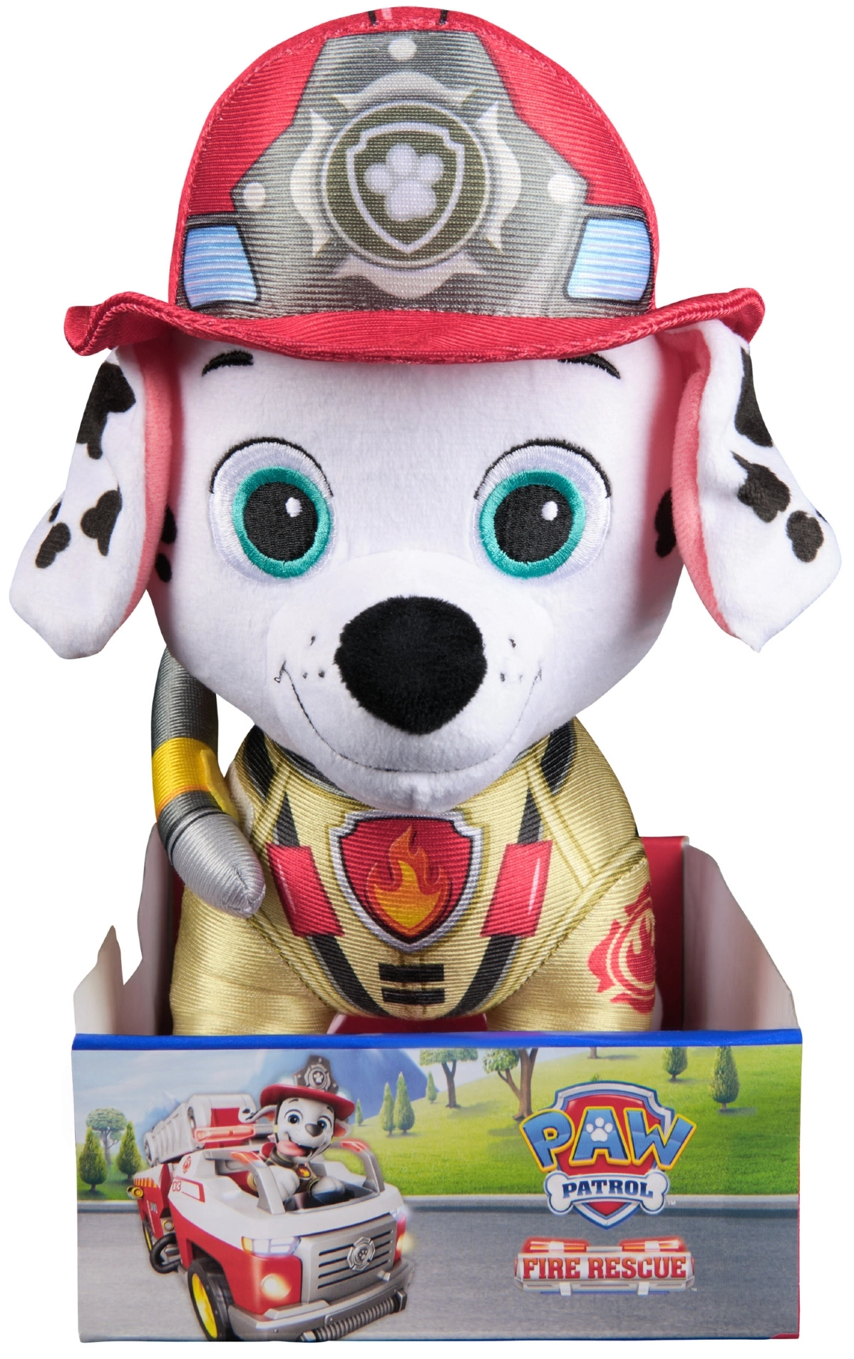 Atklājiet mīļo dalmācieti Māršalu viņa raksturīgajā ugunsdzēsēju tērpā. 25 cm augstā plīša rotaļlieta stāv uz visām četrām, ir patīkami mīksta, viegla bērna rokai un ideāli piemērota ikdienas mīļošanai un varonīgām glābšanas misijām.