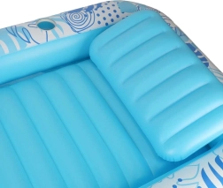 Izveido savu privāto relaksācijas zonu uz ūdens virsmas. Uzpūšamais matracis ar noņemamu spilvenu zilbalta dizaina apvieno komfortu, stabilitāti un stilu. To var ātri uzpūst ar kompresoru vai elektrisko pumpi, un vairākas gaisa kameras palīdz saglabāt formu arī ilgstošas lietošanas laikā.
