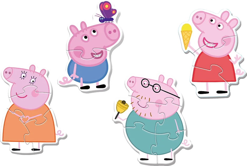 Atklājiet jautru bērnu puzli ar Cūciņu Peppu no zīmola Trefl – ideāla pirmā puzle bērniem no 2 gadu vecuma. Komplekts 4 vienā ietver attēlus ar 3, 4, 5 un 6 gabaliņiem, kurus, pateicoties lieliem un 4 mm biezajiem gabaliņiem, ērti satver pat pašas mazākās rociņas. Likšana attīsta sīko motoriku, acu–roku koordināciju un telpisko orientāciju.