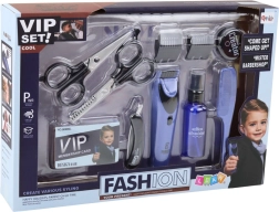 Iepakojumā atradīsiet visu radošai lomspēlei: mašīnīti, 2 šķēres, bārdas nazi, 2 uzgaļus, 2 “kosmētikas” trauciņus un ķemmi.