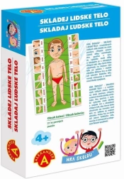 Spēle “Ar skolu - Saliec cilvēka ķermeni” ir lieliska mācību spēle, kas bērniem rotaļīgi palīdz iepazīt ķermeņa daļas. Tā satur puzles kartītes, kas ļauj bērniem identificēt un nosaukt tādas daļas kā roka, acs, deguns un citas ķermeņa daļas. Katrai kartītei ir unikāla forma, tāpēc tā iederas tikai pareizajā vietā.