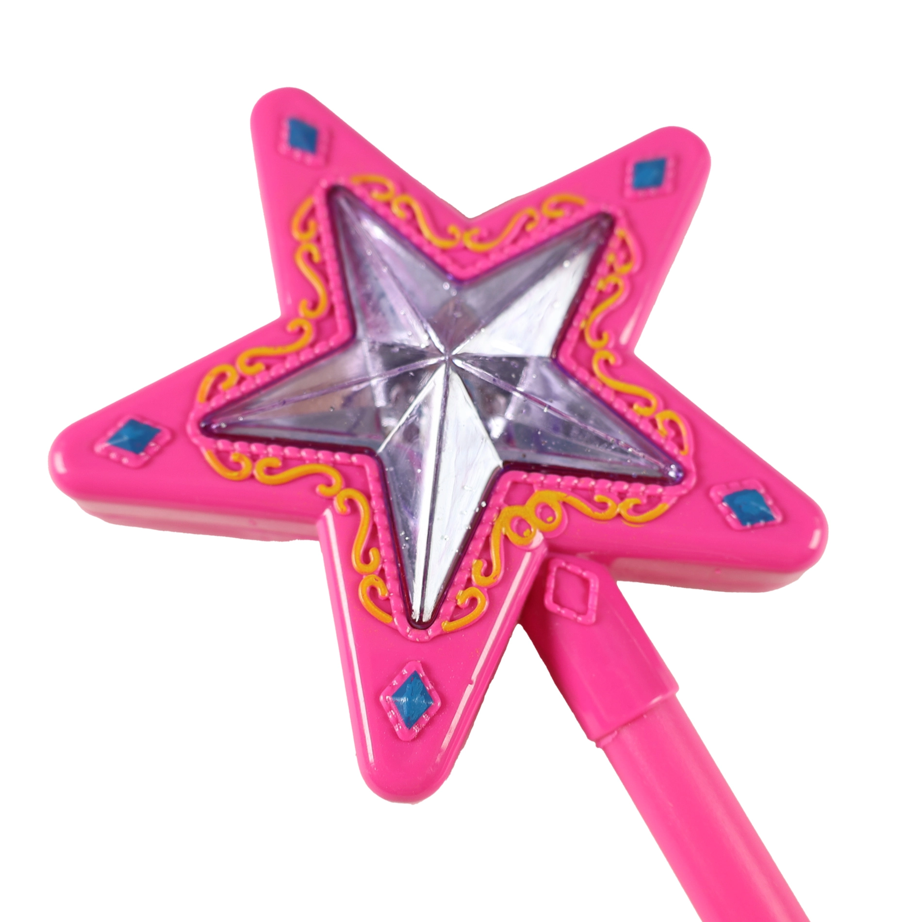Apbūriet mazas princeses un fejas ar maģisku rekvizītu – burvju nūjiņu ar gaismas un skaņas efektiem. Ar vienu mājienu nūjiņa krāsaini mirgo un atskan maģiska skaņa. Iepakojumā iekļautas arī 2× LR44 baterijas, tāpēc jautrība var sākties uzreiz.