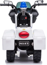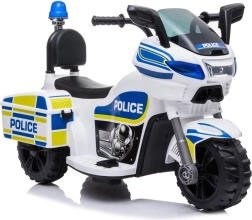 Dodies piedzīvojumu patruļās ar elektrisko policijas motociklu, kas iepriecinās mazos piedzīvojumu cienītājus. Pateicoties priekšējai LED gaismai, aizmugurējai mirgojošai bākai un autentiskai sirēnas skaņai, bērni izbaudīs reālistisku braucienu. Stabilā trīsriteņu konstrukcija un kluss 22 W motors nodrošina vienmērīgu un drošu pārvietošanos līdz 3 km/h.