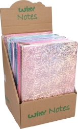 Krāsu mikss – violeta, sudrabaina, rozā un zila – ļauj izvēlēties variantu atbilstoši noskaņojumam vai stilam. Piezīmju bloks ir piemērots skolai, birojam un personīgai plānošanai.