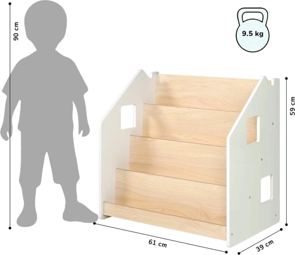BusyKids grāmatu plaukts ir izstrādāts tā, lai bērni varētu pārskatāmi redzēt grāmatu vākus un patstāvīgi tās izvēlēties un nolikt atpakaļ. Pateicoties tīram, laikmetīgam izskatam, tas lieliski iederas bērnistabā, rotaļu telpā vai viesistabā. Priekšējie plaukti tur iecienītākos nosaukumus pa rokai, kamēr aizmugurējais glabāšanas nodalījums ietilpina papildu grāmatas vai rotaļlietas.