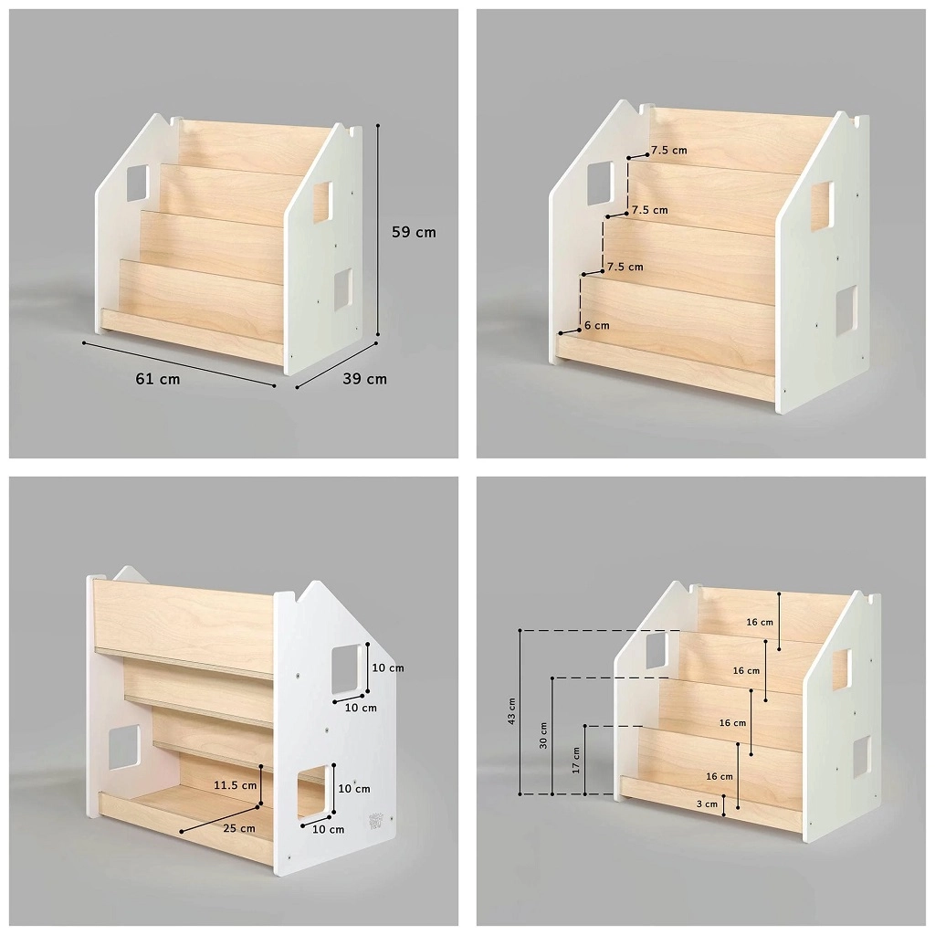 Praktiskais BusyKids bērnu grāmatu plaukts veicina patstāvību un mīlestību pret lasīšanu. Pateicoties grāmatu vāku attēlošanai uz priekšu, bērni viegli izvēlas savu iecienīto. Tas piedāvā 4 ietilpīgus plauktus un aizmugurējo glabāšanas nodalījumu grāmatām vai rotaļlietām. Konstrukcija ir izturīga un droša, ar noapaļotām malām un ūdens bāzes lakas pārklājumu. Minimalistiskais dizains iederas jebkurā interjerā.