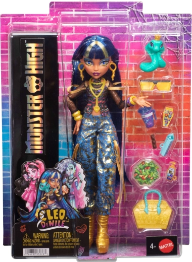 Ienāciet MONSTER HIGH pasaulē ar ikonisko Cleo De Nile, kas mirdz modernā ēģiptiskā stilā. Īss tops ar sašņorējumu pie kakla, sietveida piedurknes un zilas kargo bikses ar zeltainiem akcentiem uzsver viņas karalisko izcelsmi. Komplektā ir arī uzticamā kobra Sykfija, kas lieliski papildina jebkuru šausmīgi stilīgu ainu.