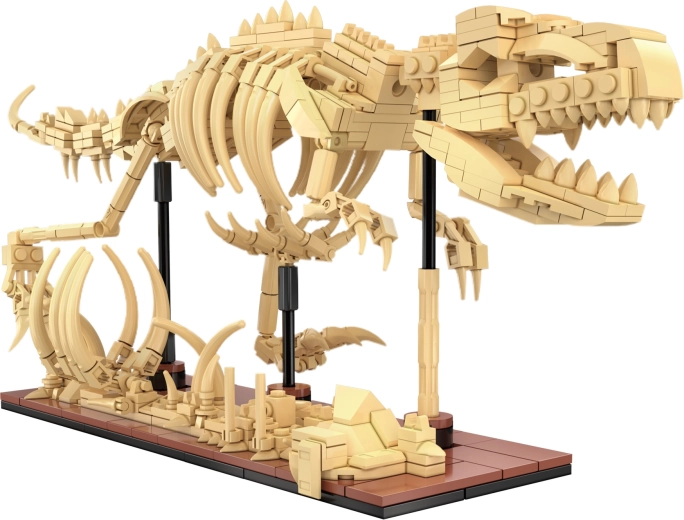 - Pārbūve par T-Rex: apvienojot visas detaļas (565 detaļas), izveidosiet lielu izstāžu modeli