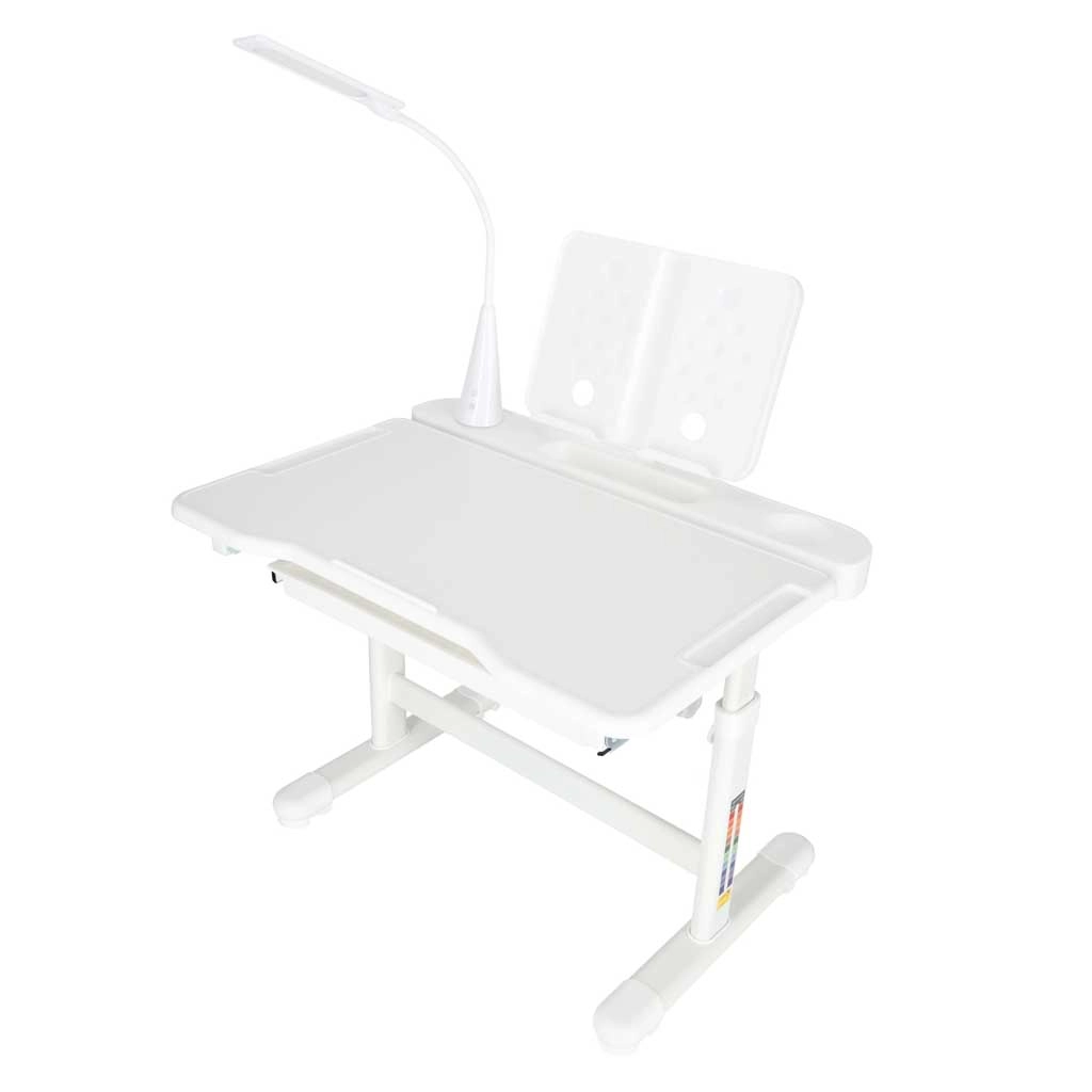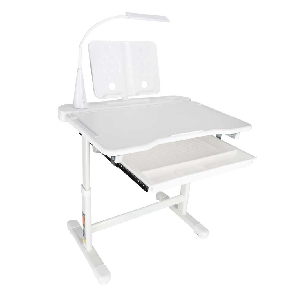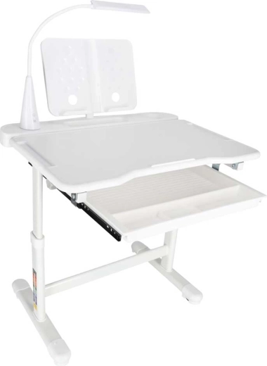Integrētā USB barota LED lampa piedāvā 3 gaismas krāsas (silta, auksta, jaukta) un 3 spilgtuma līmeņus ideālam apgaismojumam jebkurā laikā. Plata izvelkama atvilktne ar nodalījumiem un grāmatu/planšetes turētājs palīdz piederumus turēt kārtībā un pa rokai. Drošās noapaļotās malas un izturīga rāmja konstrukcija no metāla, MDF un plastmasas nodrošina stabilitāti un ilgu kalpošanas laiku.